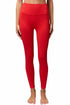 Calça básica de cintura alta em vermelho rubi ousado, projetada para conforto sem costuras. Apresenta costura interna de 58 cm com cós de compressão e alça interna de silicone para garantir um ajuste perfeito. Confeccionada em 92% nylon e 8% elastano. Oferece uma silhueta justa e justa nas pernas, com fecho de pressão. As instruções de cuidado incluem lavagem à máquina com água fria e cores semelhantes, secagem em temperatura baixa, evitar alvejantes, passar estampas e lavar a seco.