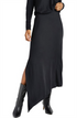 Saia longa preta assimétrica com fendas laterais | - Elegante e fluida para um visual estiloso | - Ideal para usar em looks mais formais ou informais.