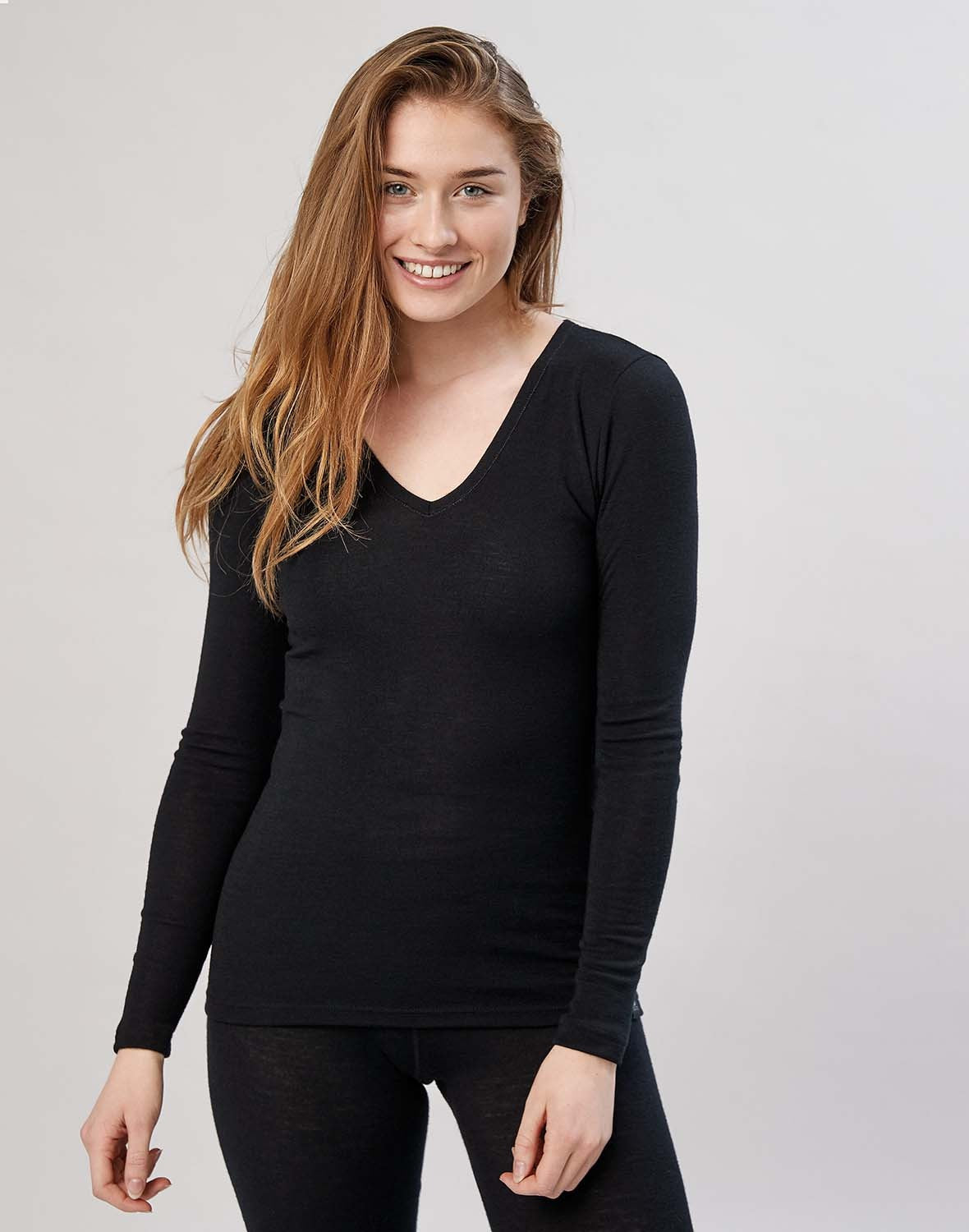 Camiseta feminina com decote em V canelado e esplêndida, preta, tamanho grande