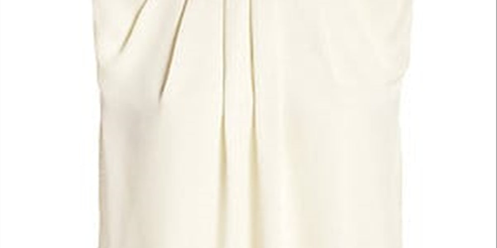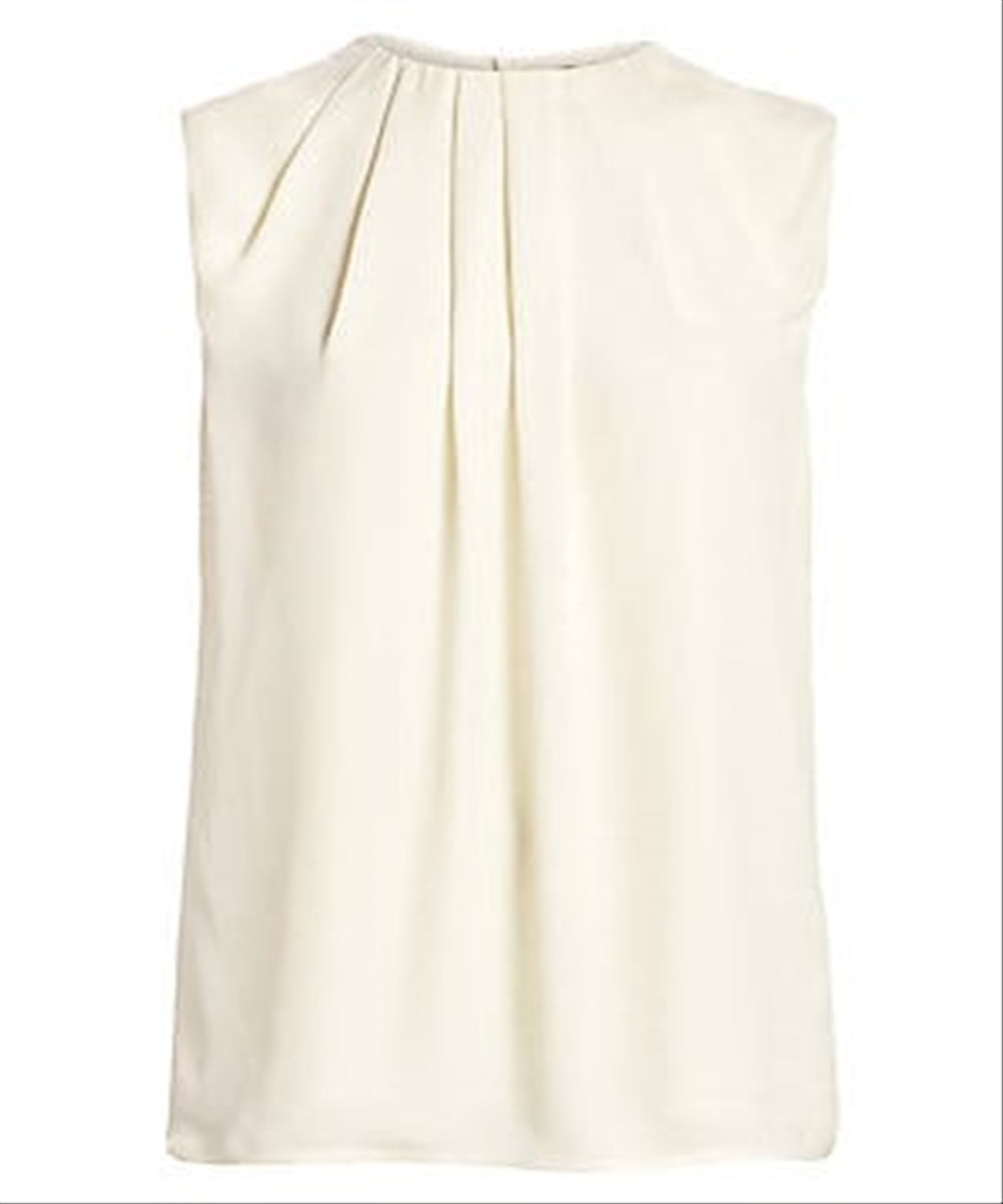 Coleção St| John, gola alta de cetim de seda georgette com detalhe drapeado plissado no decote | Decote redondo | Sem mangas | Silhueta relaxada | Bainha reta | Zíper nas costas