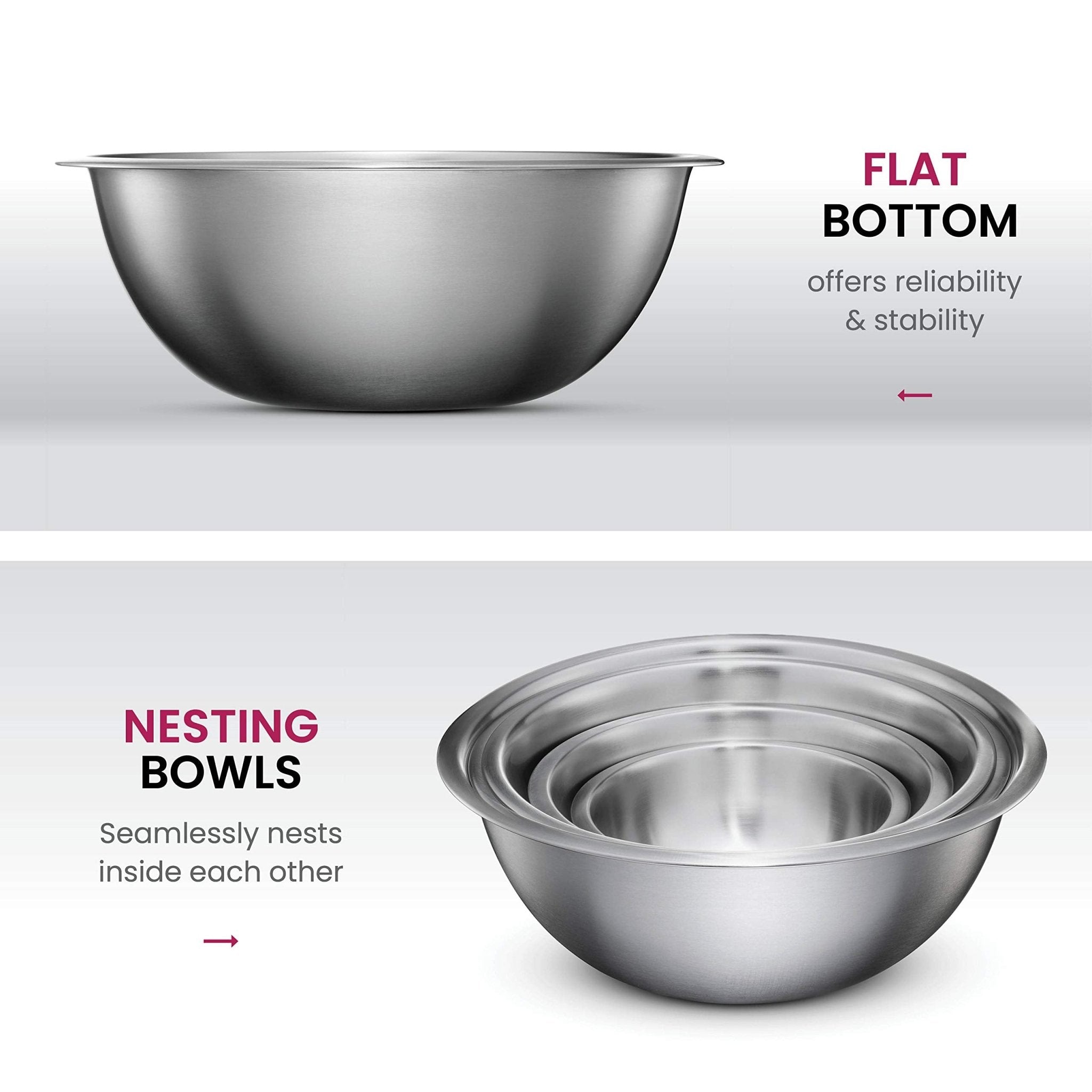 - DURÁVEIS, MAS LEVES - Nossas tigelas leves de aço inoxidável - ideais para tarefas diárias - são feitas de materiais duráveis e inquebráveis, próprios para freezer e lava-louças, para durar a vida toda