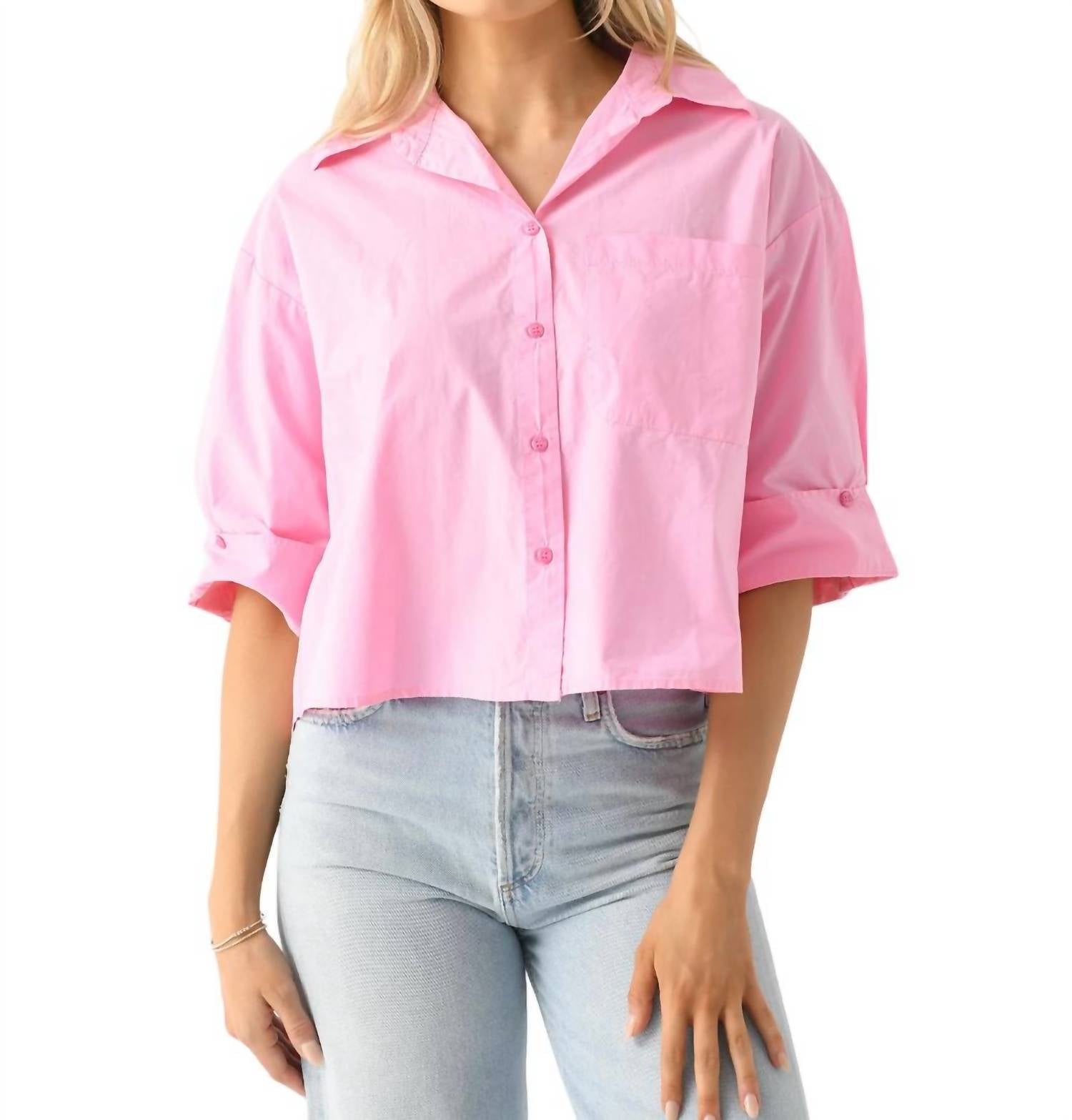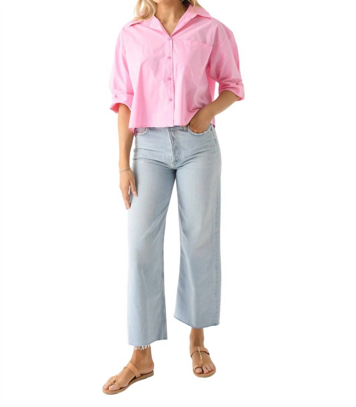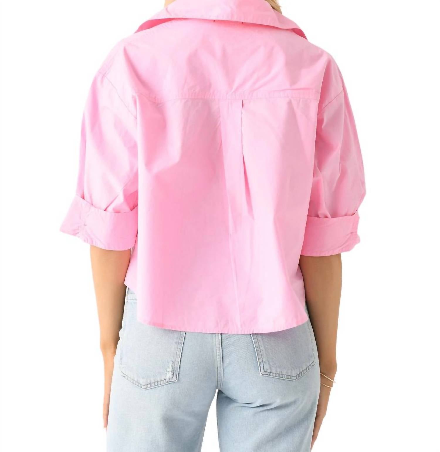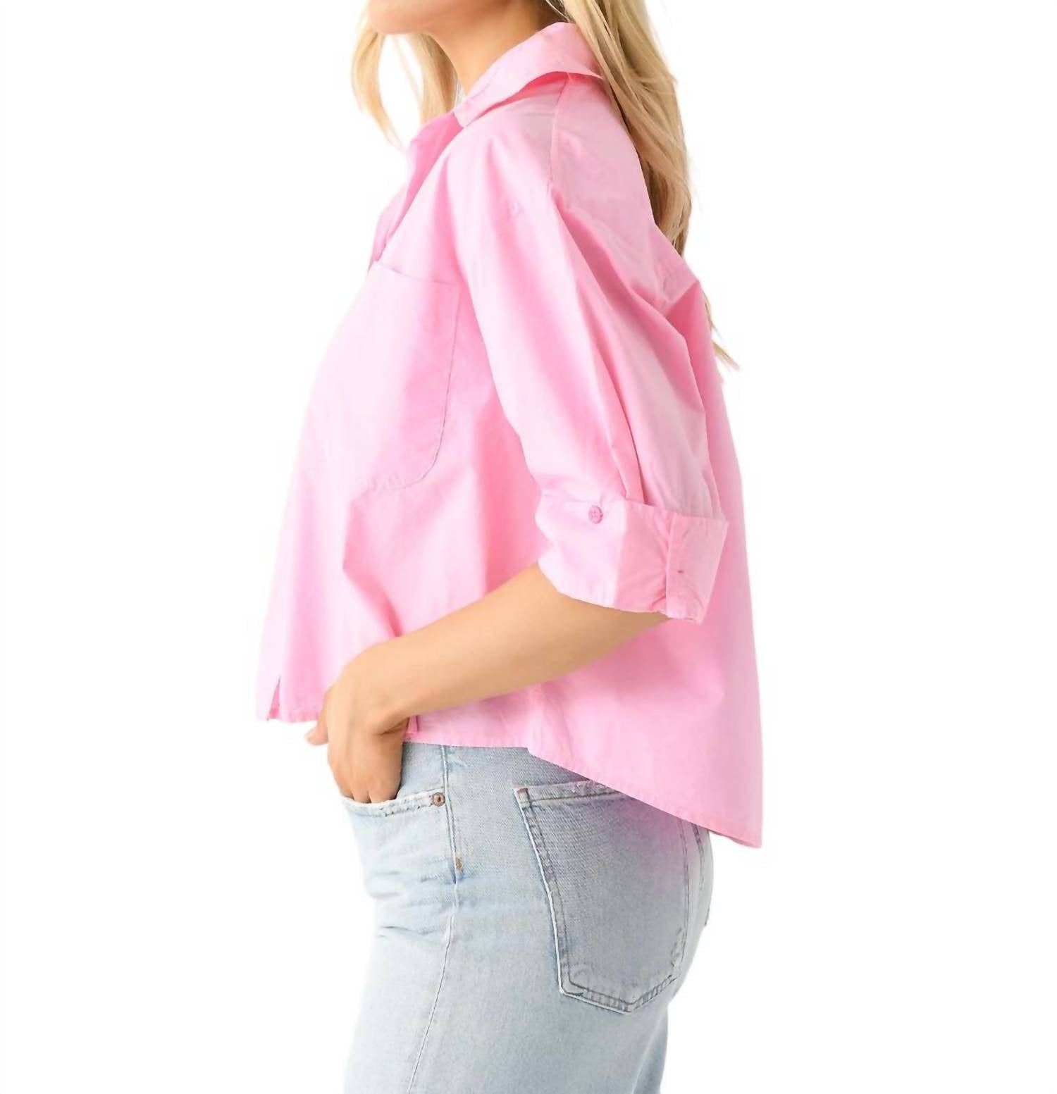 Uma camisa clássica de botões que nunca sai de moda. Blusa levemente cropped de botões, confeccionada em algodão leve. Possui gola ampla, ombros caídos, bolso no peito esquerdo, punhos abotoados, carcela abotoada e caimento solto. 100% algodão.
