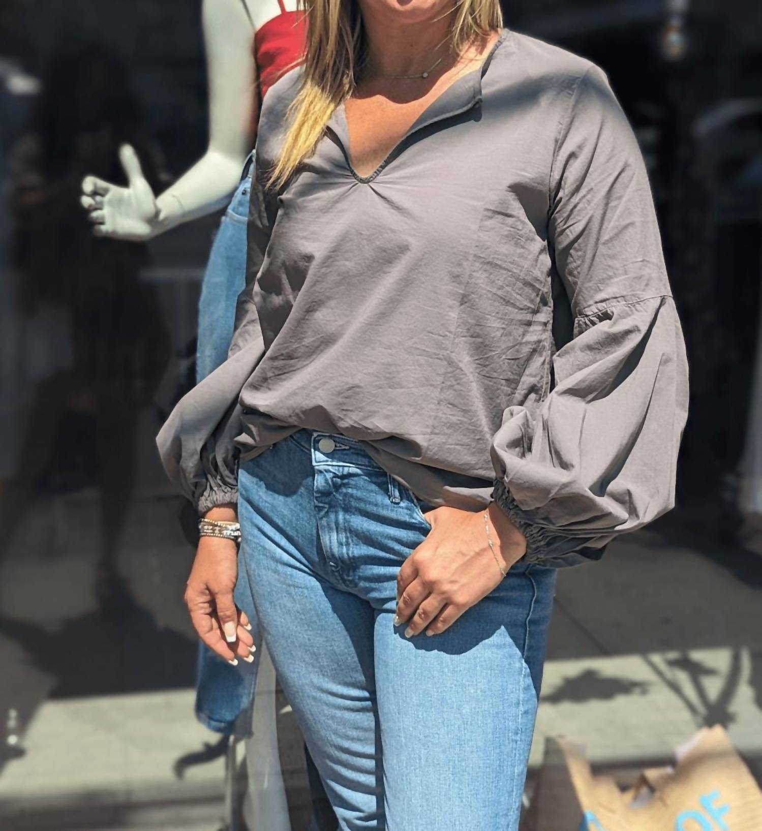 Uma blusa atemporal que nunca sai de moda. Eleve seu guarda-roupa com a blusa STARKx Lantern na sofisticada cor Ash, perfeita para viagens e trabalho. Esta blusa apresenta mangas longas e ousadas estilo lanterna e um versátil decote em V que pode ser ajustado para o look desejado. Confeccionada em 100% algodão, esta blusa macia e respirável é uma peça essencial para qualquer ocasião. Fechamento: Puxe para vestir. Cuidados: Lavar à máquina.