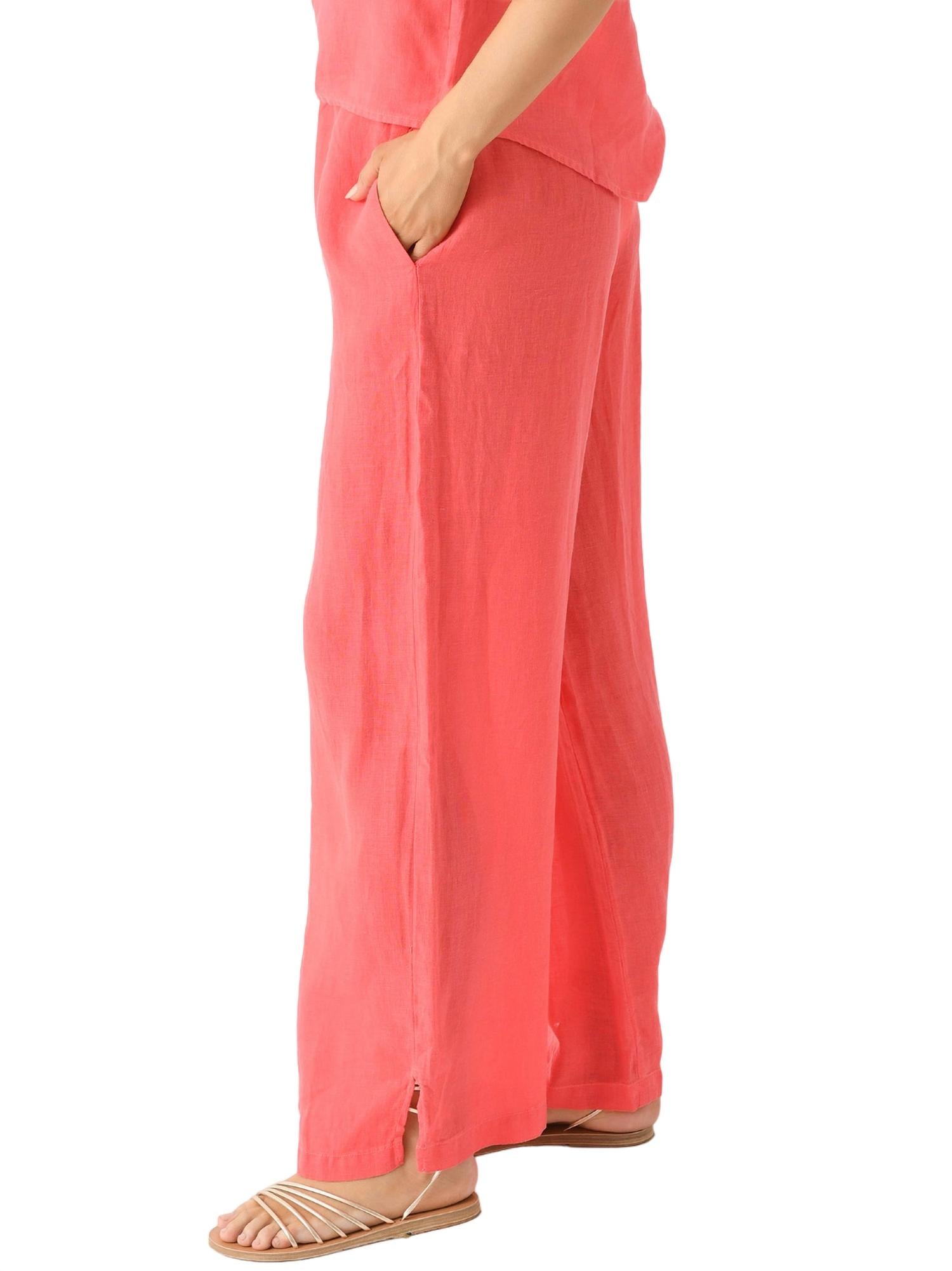 Esta calça reta é estilosa e confortável. Já mencionamos o caimento perfeito? Caimento clássico. Cós elástico. Bolsos laterais. Bainha dividida. Silhueta reta. A modelo tem 1,75 m, busto 86 cm, cintura 66 cm e quadril 94 cm, vestindo calça tamanho P. Lavar à mão. 100% linho.