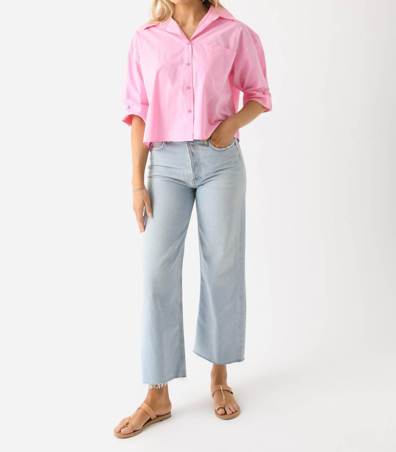 Experimente um estilo descontraído com o Top Feminino Aura da STARKx, uma blusa moderna e levemente cropped em um escarlate marcante. Esta peça apresenta mangas até o cotovelo e uma gola clássica, acentuada por um ombro caído e um bolso no peito esquerdo. Confeccionada em 100% algodão leve, oferece um caimento solto com um prático fecho de botão. A modelo veste tamanho P (altura 1,75 m, busto 86 cm, cintura 66 cm, quadril 94 cm).