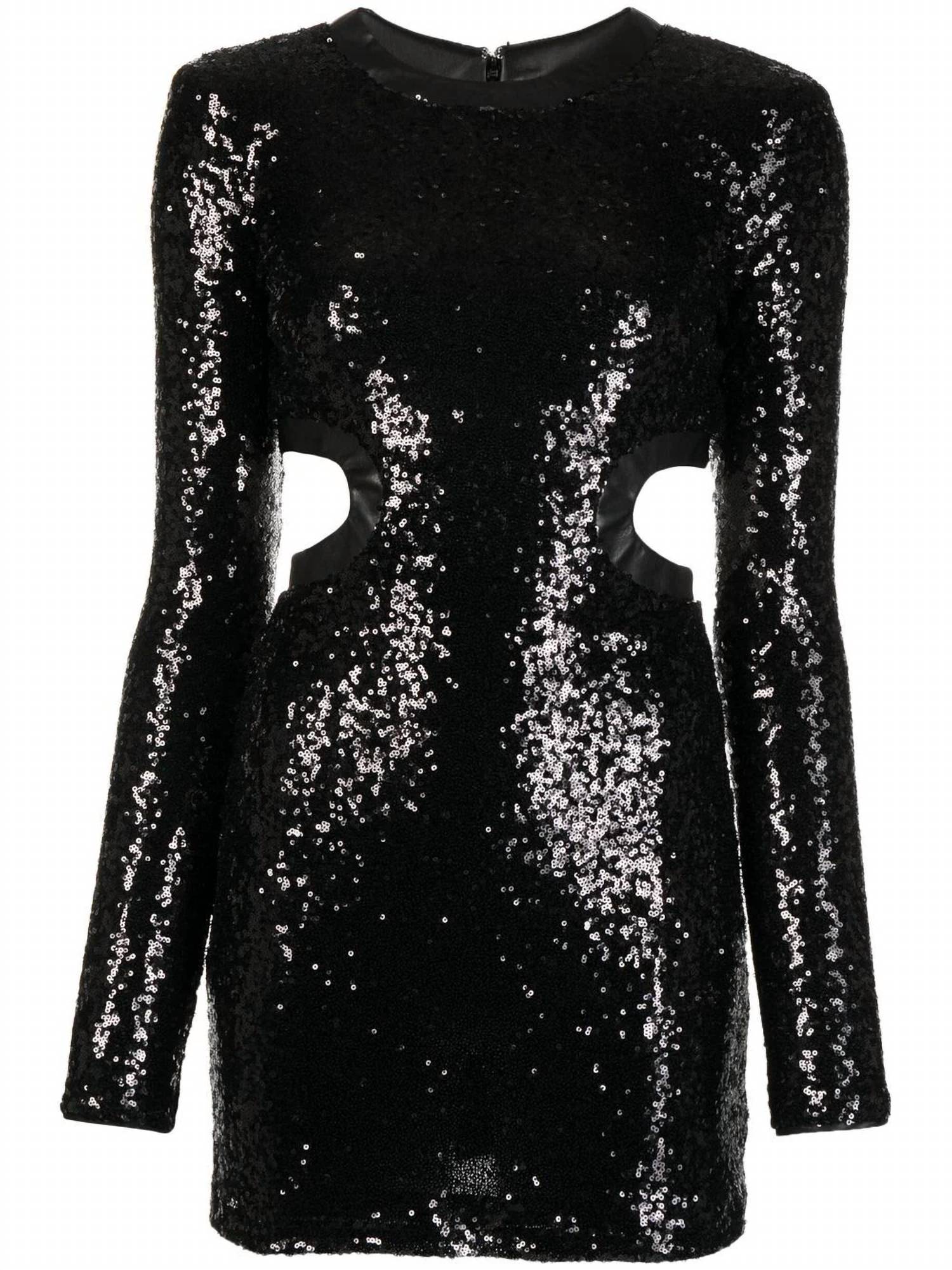 O vestido de manga comprida perfeito para os meses mais frios. Confeccionado em nylon luxuoso e adornado com lantejoulas por toda a peça. Uma obra-prima em lantejoulas pretas. Exala elegância e brilho. Apresenta um elegante decote redondo e mangas compridas. Silhueta sofisticada. Fabricado na Itália. Detalhes meticulosos no acabamento em couro vegano. Recorte ousado na cintura. Fecho de zíper nas costas. Acabamento elegante. Conjunto deslumbrante. Lavagem a seco somente.