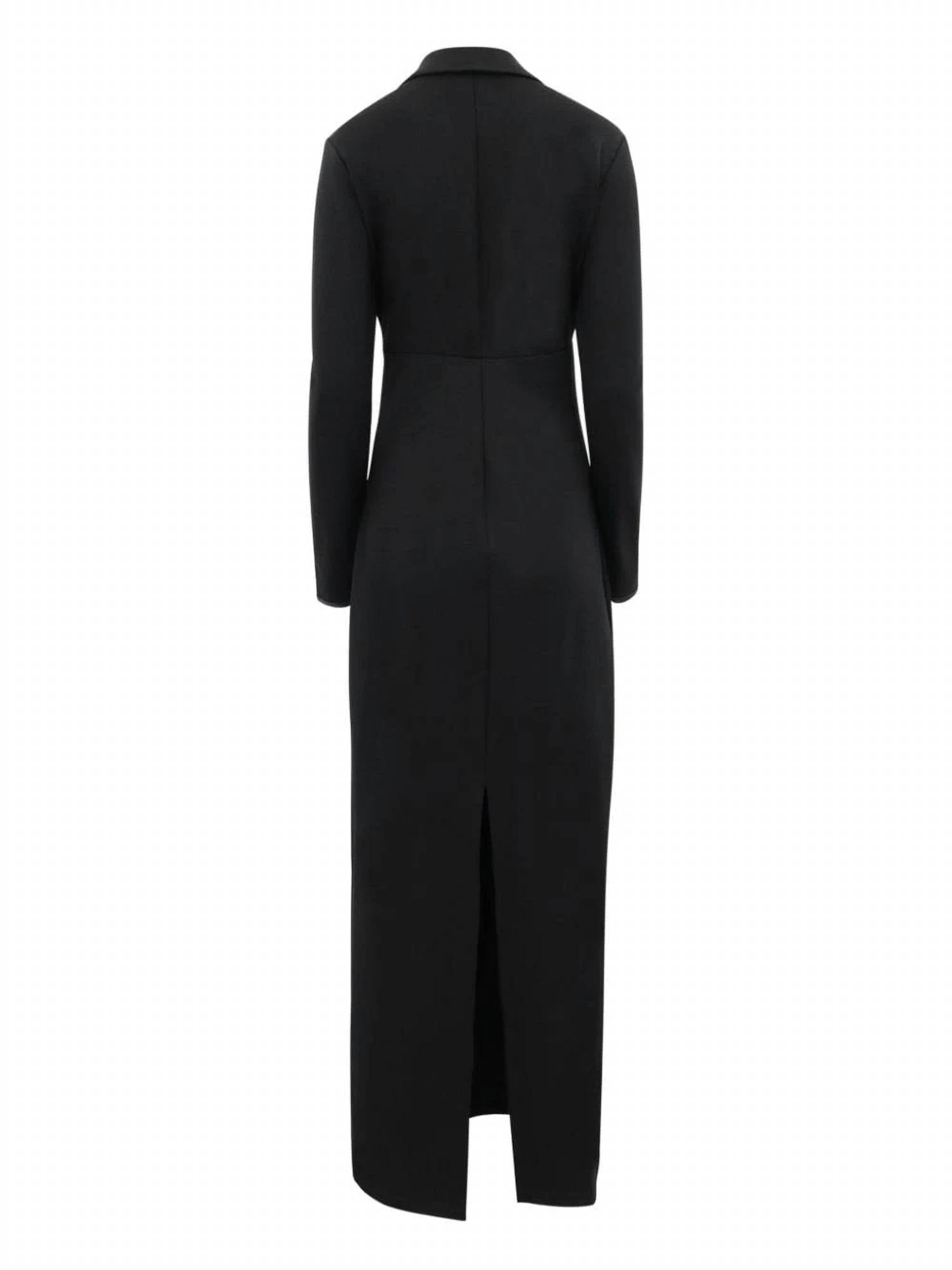 Lindo e confortável, este vestido de manga comprida tem tudo. Uma peça sofisticada. Confeccionado em uma mistura luxuosa de 68% rayon, 27% nylon e 5% elastano. Equilíbrio perfeito entre conforto e elasticidade. Apresenta uma deslumbrante gola de couro sintético. Silhueta clássica. Cor preta sólida. Exala um glamour discreto. Desenhado com mangas compridas e bainha longa. Feito sob medida para um look longo que alonga a silhueta. Fechamento em zíper. Caimento elegante e sem costuras. Lavar somente a seco para manter sua qualidade requintada.