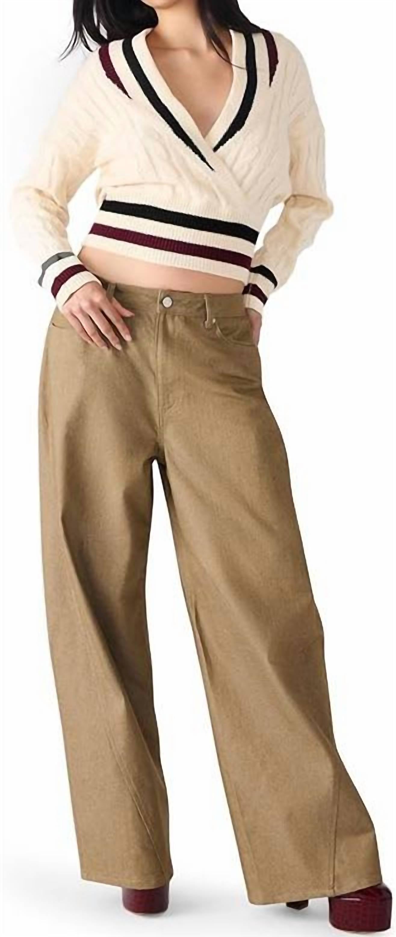 Wear this v-neck sweater with your favorite denim for the perfect fall look. Elevate your wardrobe with the Addison Sweater by Steve Madden, a cream pullover designed for versatile styling. Featuring long sleeves and crafted from 100% acrylic, this faux wrap sweater flaunts varsity-inspired striping, perfect for transitioning seasons. The open V-neck high collar adds a touch of elegance while the sweater's length is 20.5 inches. Imported with a pull-on closure, it requires hand washing to maintain its quality.