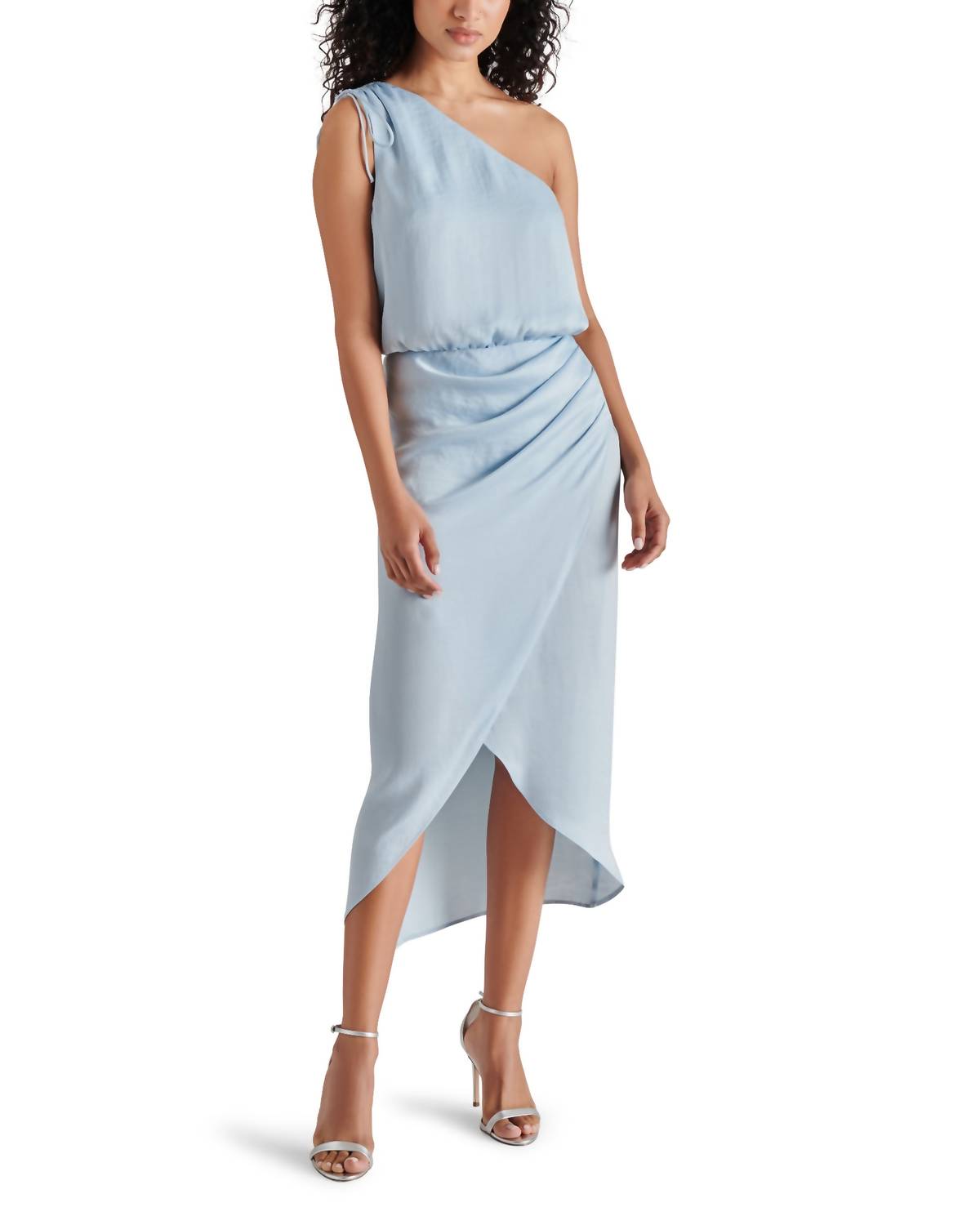 Perfeitamente ajustado e com caimento perfeito. Apresentamos o Vestido Adele por STEVE MADDEN, uma adição versátil e chique a qualquer guarda-roupa. Este vestido azul-claro, sem mangas, é confeccionado em 100% poliéster, garantindo o máximo conforto. Com decote ombro a ombro, possui fecho pull-on para facilitar o calce. Com um corte em A, elegante, mede 138 cm de comprimento, ideal para qualquer ocasião.