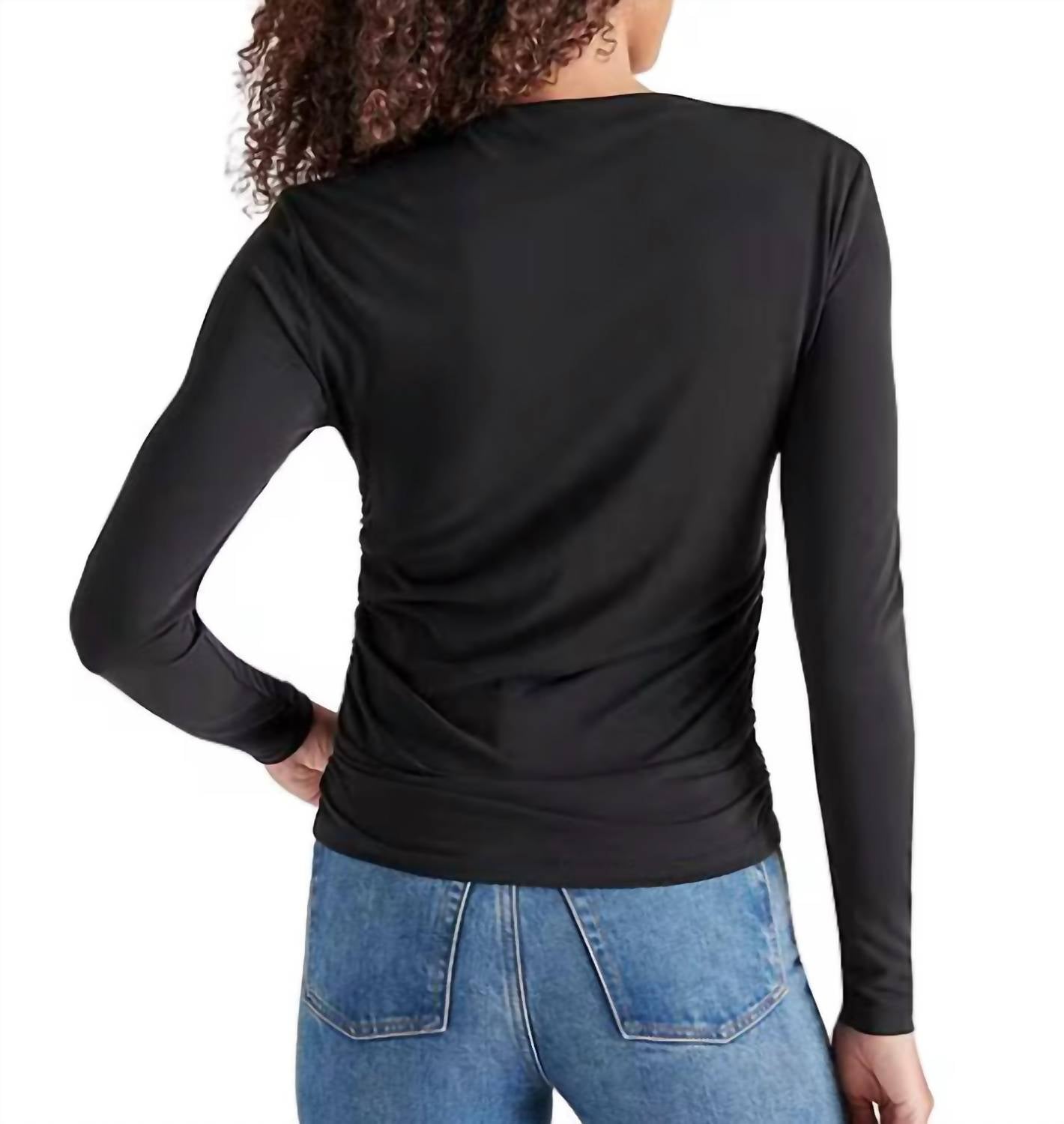 Discover effortless elegance with the STEVE MADDEN Women's Elvira Long Sleeve Top in Whisper White. This solid long sleeve essential features a chic draped neckline and ruched sides for a flattering silhouette. Crafted from a soft blend of 95% Polyester and 5% Spandex, it ensures a comfortable, breathable fit. Designed for versatile style, this slim-fitting top has a convenient pull-on closure and can be seamlessly integrated into both casual and evening wardrobes. Care: Machine wash cold with like colors, and lay flat to dry.