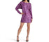 Stretch Sequin Fabrication for a Flattering Fit. Boat Neckline and Long Sleeves for an Elegant Touch. Pullover Construction for Easy Wear. Vibrant Purple Sequins for Eye-Catching Shimmer. Short Hemline to Showcase Legs.