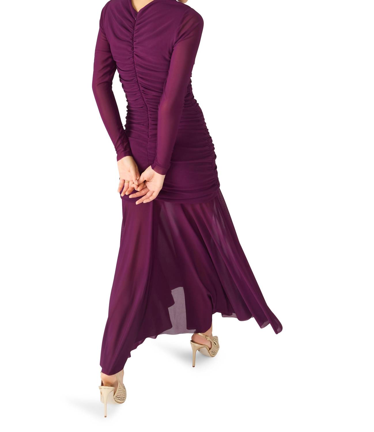 The Kiara Maxi Dress by STEVE MADDEN in a sophisticated beet hue offers a stunning look with its long sheer sleeves and graceful V-neckline. This elegant evening piece features rippled ruching to enhance your silhouette and measures 56 1/2" in length, ensuring a flattering fit. Crafted from 92% polyester and 8% elastane, it includes a zip closure for ease and is designed for dry cleaning. Complete with an A-line skirt and imported quality, it's perfect for your fall evening events.