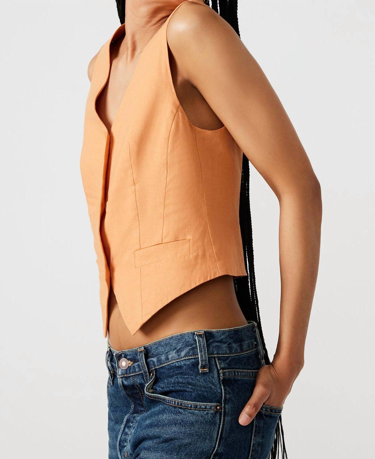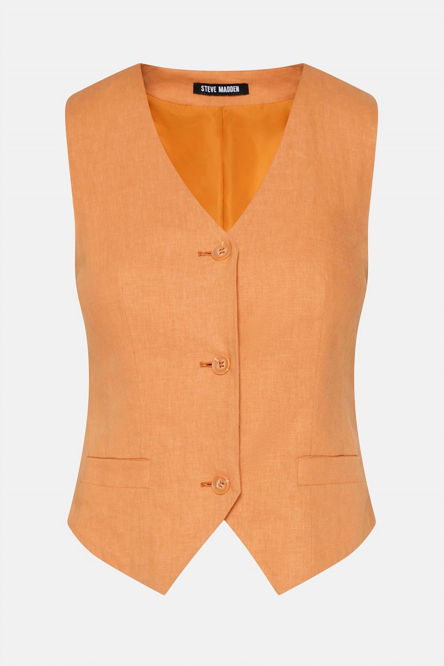Um colete tão versátil que você pode combiná-lo com quase qualquer roupa e ele parecerá novo em folha sempre. Colete com botões. Totalmente forrado. Detalhe de recorte nas costas. Comprimento: 56 cm. 55% linho, 45% viscose. Lavar à mão com água fria separadamente, não usar alvejante, secar na horizontal, passar a ferro em temperatura baixa, se necessário, ou lavar a seco. Kaitlyn tem 1,78 m e veste tamanho P. Importado.