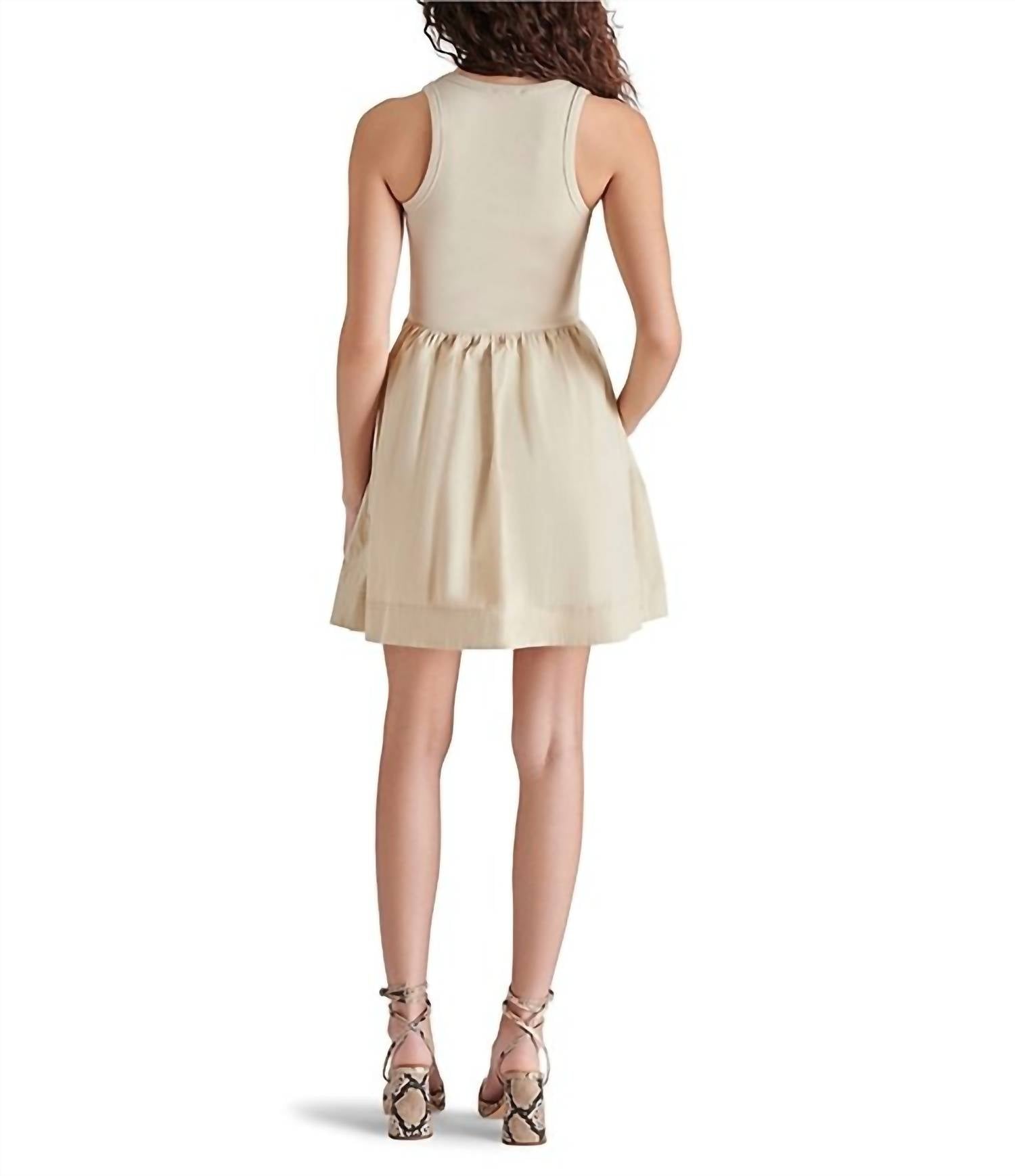 Um vestido curto e arejado para os dias mais quentes. Revele seu estilo pronto para as férias com o Vestido Curto Tottenham com Decote Redondo e Sem Mangas da Steve Madden, deslumbrante em um tom bege areia. Este vestido liso com corte em A apresenta decote redondo e é inteiramente confeccionado em 100% nylon, oferecendo um caimento moderno e leve, perfeito para a primavera. Com um fecho prático e bolsos práticos, esta peça é funcional e elegante. Cuidados: Lavar à mão para maior durabilidade.