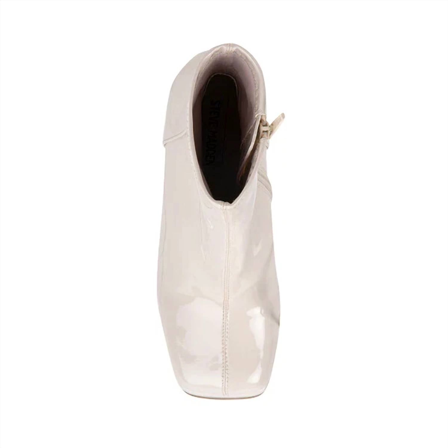 Unleash sophisticated style with the Bianca Platform Boots by Steve Madden, crafted for those elegant evening events. Designed in a chic Bone Patent color, these boots feature a striking 5-inch platform heel, vegan leather upper, and a squared toe for a touch of modern flair. The synthetic lining and leather sole ensure comfort and durability. Elevate your fall wardrobe with these high-heel boots that embody the trend of quiet luxury.