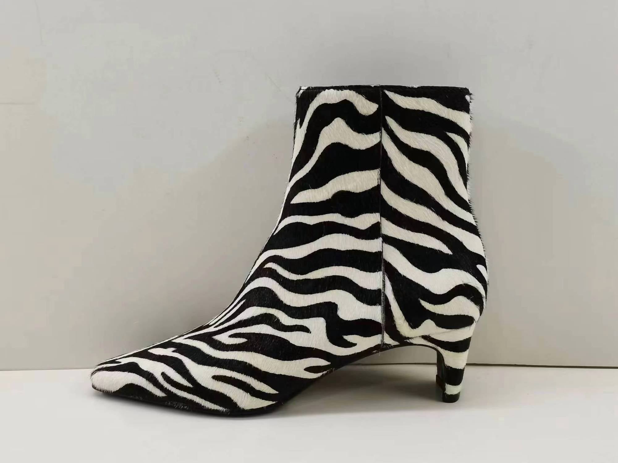 Step up your style game with the Delvie Ankle Boots by Steve Madden, where throwback-chic meets modern flair. Crafted from sleek, genuine calf hair adorned with a striking black and white zebra print, these boots boast a pointed-toe upper with an ankle-high shaft. The 2-inch blade heel and a 6.5-inch instep zipper ensure both comfort and effortless on-and-off. Made from genuine leather with a synthetic lining and a lightly cushioned insole, these imported beauties feature a rubber sole for secure footing.