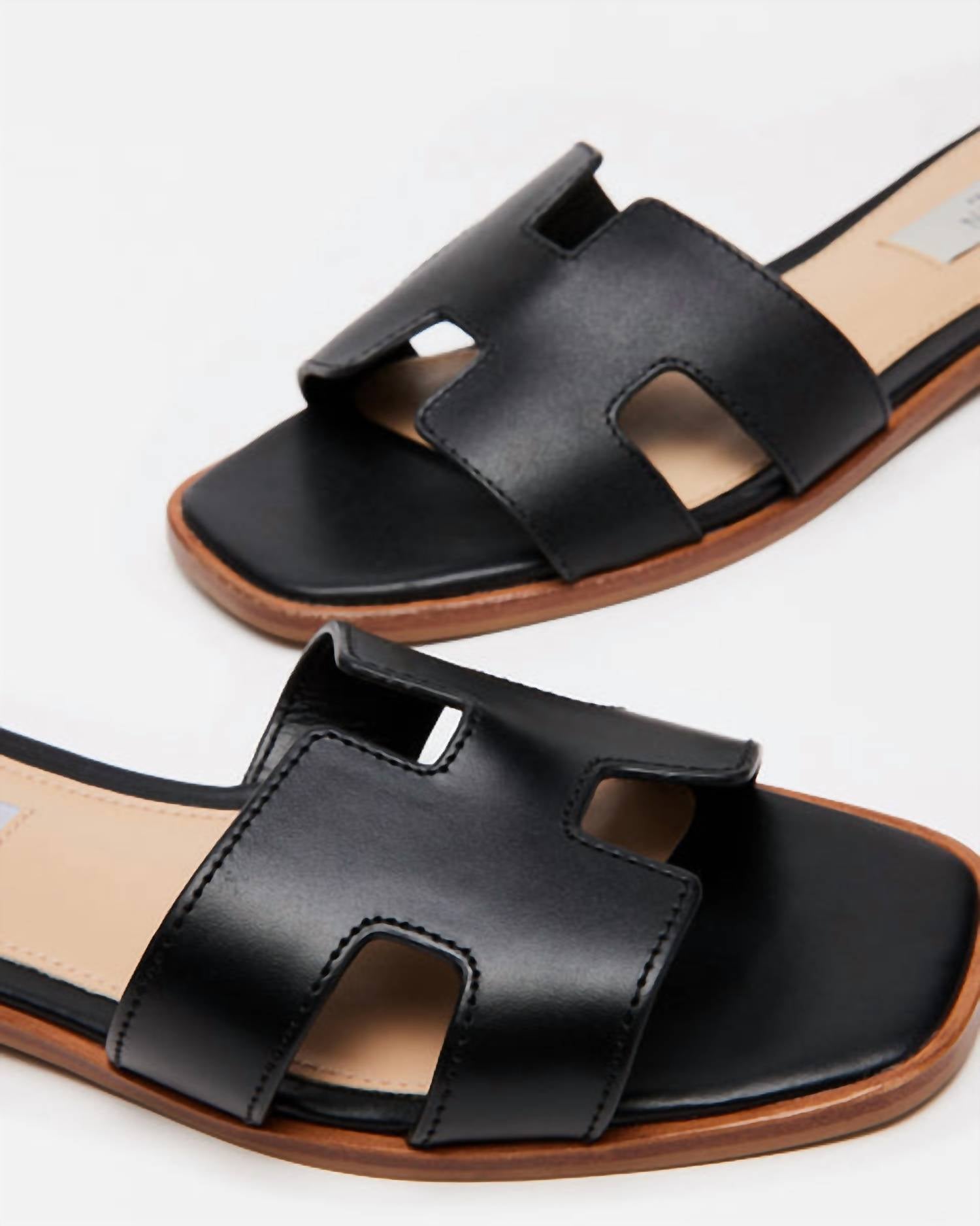 Step into style with the Women's Haydn H Strap Leather Sandal by Steve Madden, a chic cognac sandal perfect for any spring dinner party. Featuring a geometric H design and cutout details on the wide single strap, this minimalist slide exudes elegance. Crafted in Mexico, these sandals have a comfortable .75-inch flat heel and an open toe for effortless grace. Made with a leather upper and a manmade sole, the slip-on style ensures convenience, while the lightly cushioned insole offers optimal comfort.