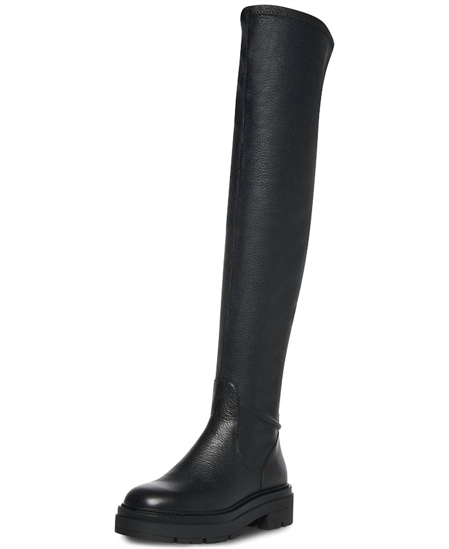Step into bold elegance with the Women's Industry Over The Knee Fashion Boot by Steve Madden in a striking Black Paris color. This chic boot combines a leather and synthetic upper with a synthetic lining for a stylish finish, featuring a comfortable 1.75-inch low heel. Designed with a trendy over-the-knee silhouette, it includes a synthetic sole and comes in multiple shaft measurements to ensure a perfect fit. With its pull-on closure, these boots are ideal for pairing with micro mini dresses to make a statement.