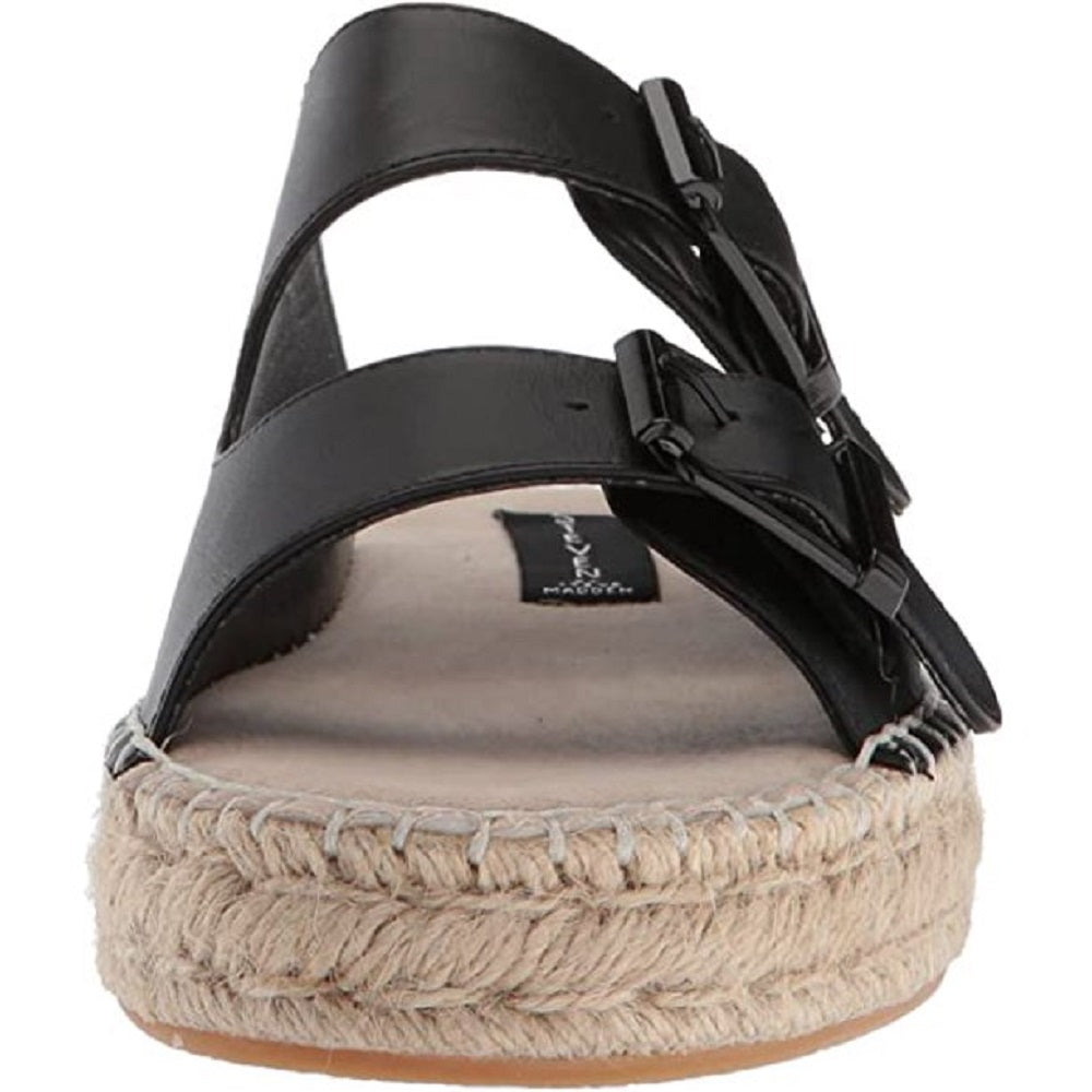 Sandálias femininas Steve Madden de couro Lapis com bico aberto, casuais, alpargatas, pretas, tamanho 8