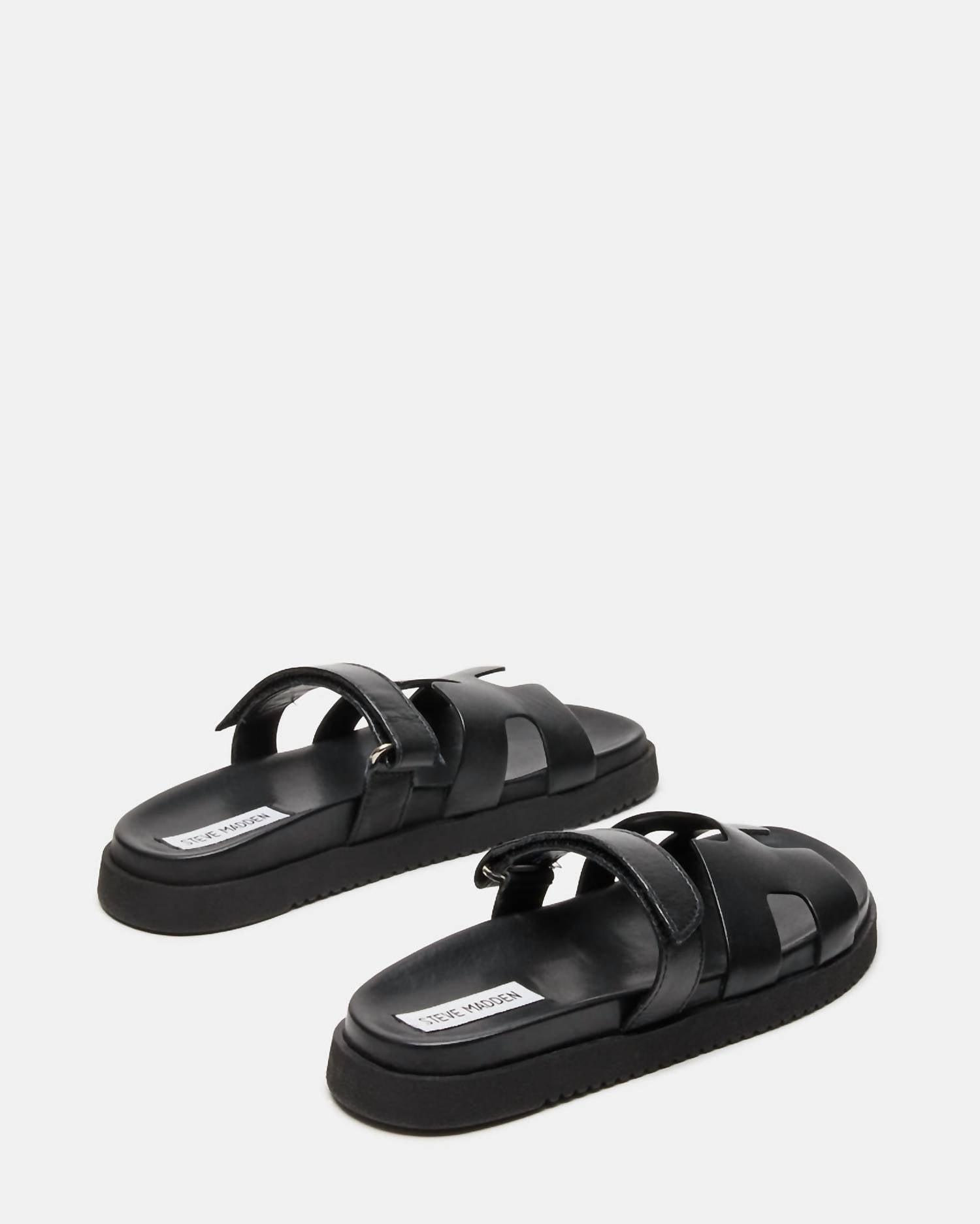 Introducing the Women's Mayven Slides by Steve Madden, a chic and effortless addition to your spring wardrobe. These sandals feature a sleek open toe design crafted from high-quality leather in a timeless black hue. Perfect for the warmer months, they offer a sophisticated touch for both casual and dressy occasions. Step out in style with these versatile slides designed exclusively for women.