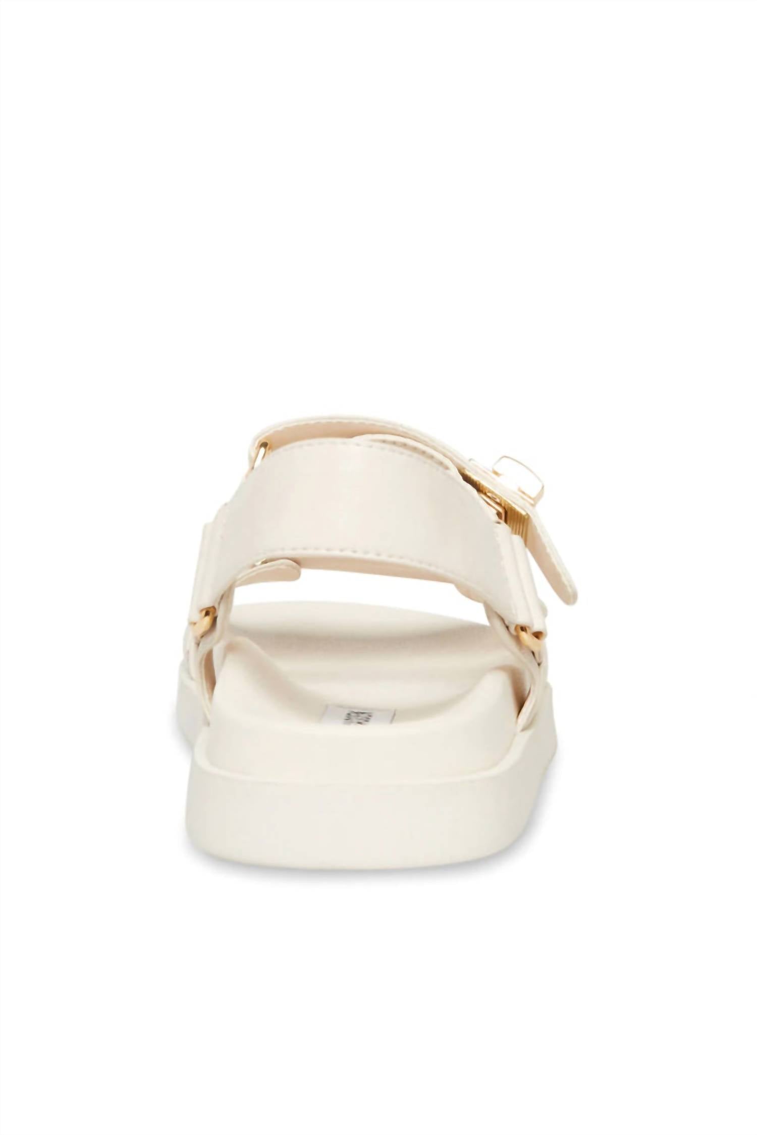 Apresentamos a Sandália Plataforma Feminina Mona da STEVE MADDEN, uma versão chique da clássica sandália de três tiras em um sofisticado tom de osso. Confeccionada em couro e com detalhes em ferragens douradas, esta sandália apresenta palmilha moldada para maior conforto. O design inclui fecho giratório na tira superior e fecho ajustável em velcro na tira frontal. Com salto de 2,5 cm, esta sandália aberta combina estilo e praticidade. Origem: Importada.
