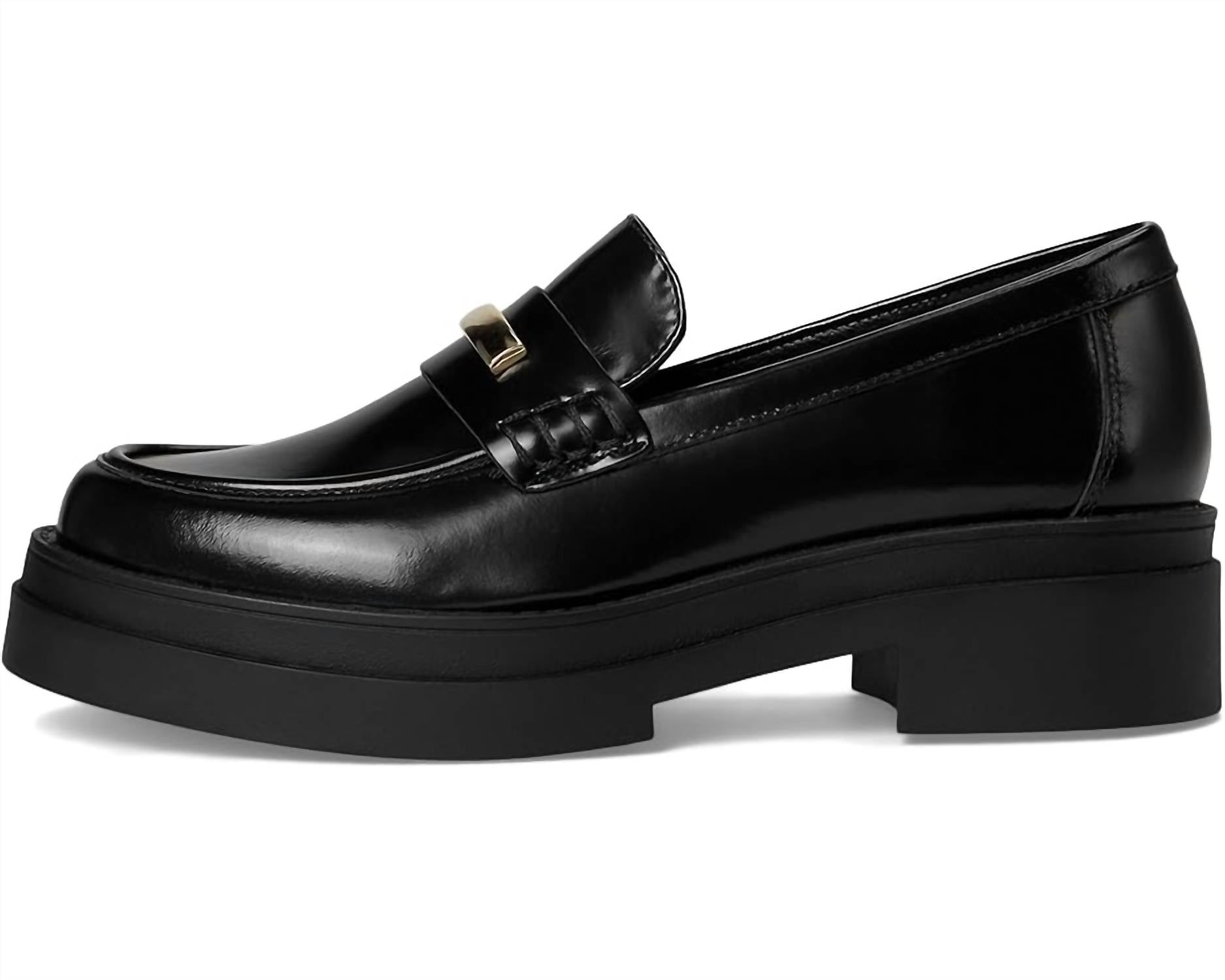 Elevate your footwear collection with the Women's Rodrigo Platform Loafer by Steve Madden in sleek black. Designed with a synthetic upper and lining, this slip-on style features an almond moc toe and a lightly padded footbed for comfort. The 1-inch platform and 1.75-inch block heel offer a balanced lift while maintaining a classic look. Crafted with a synthetic sole, these loafers are perfect for a dinner party and designed to bring a preppy touch to your fall wardrobe. Imported.
