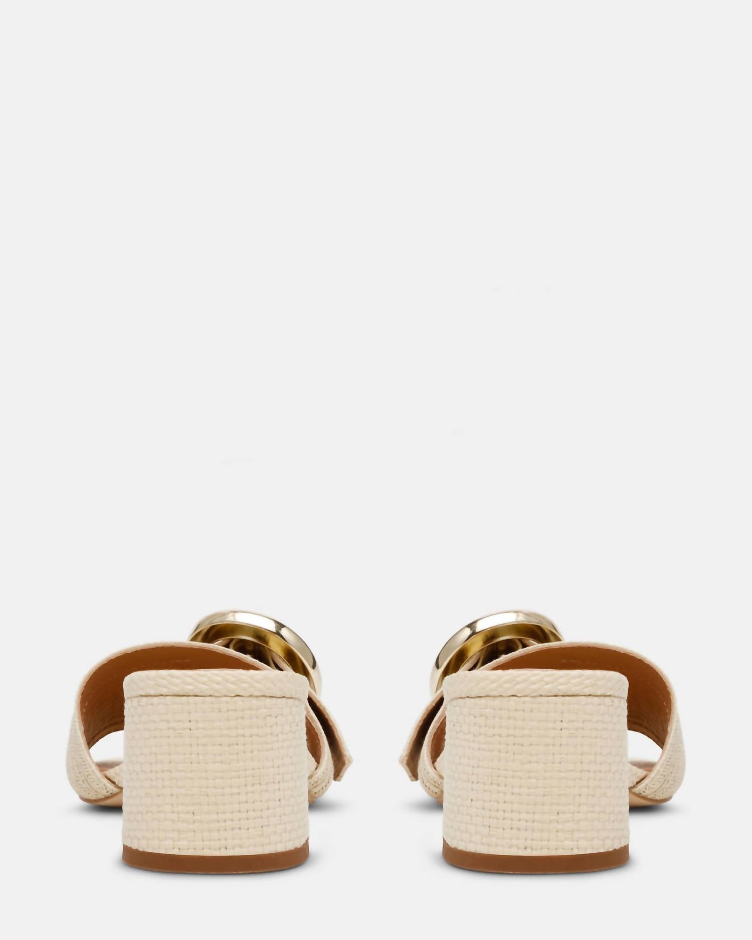 Step into sophistication with the Women's Seacrest Sandal by Steve Madden, a staple in minimalist summer fashion. This natural raffia mule heel brings elegance with an open square-toe design complemented by a chic buckle ornament detail. Made with a synthetic raffia upper, lining, sock, and sole, it stands out with its 2-inch block heel, perfectly balancing style and comfort. Imported to guarantee quality, this sandal is ideal for any occasion, from Thanksgiving dinners to elegant outings.
