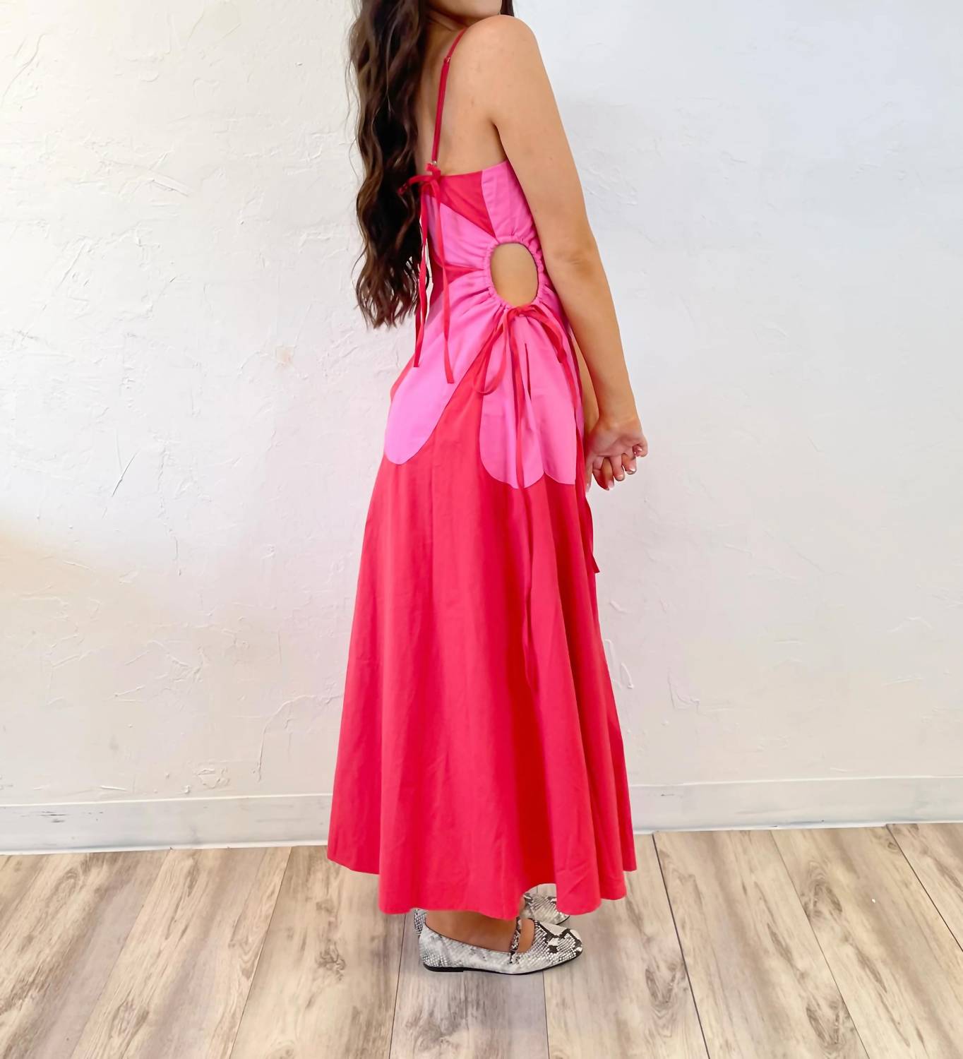 Elevate your summer wardrobe with the Sleeveless Side Cut-out Long Dress by Strut & Bolt, a sophisticated piece that embodies minimalist charm. Featuring adjustable spaghetti straps and a squareneck, this A-line silhouette dress is crafted from 100% cotton with partial lining, promising comfort and style. The dress includes a side zipper closure for a seamless fit and boasts a chic pink floral design with a side cut-out and tie detail for added flair. Perfect for vacation wear, this red/pink pattern is a standout choice for a day out, including Valentine's Day celebrations.