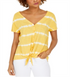 Blusa Tie-Dye Tie-Front com estampa de tie-dye da Style & Co, amarela, tamanho XS