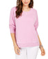 Ajuste relaxado; aprox. 25 de comprimento | Devido ao tamanho generoso; sugerimos um tamanho menor para um ajuste perfeito | Decote redondo com faixa canelada | Costura contrastante nas costuras; faixa canelada na bainha | Mangas compridas raglan com punhos canelados