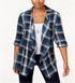 Calça feminina xadrez aberta de algodão estilo & co, azul, tamanho extragrande