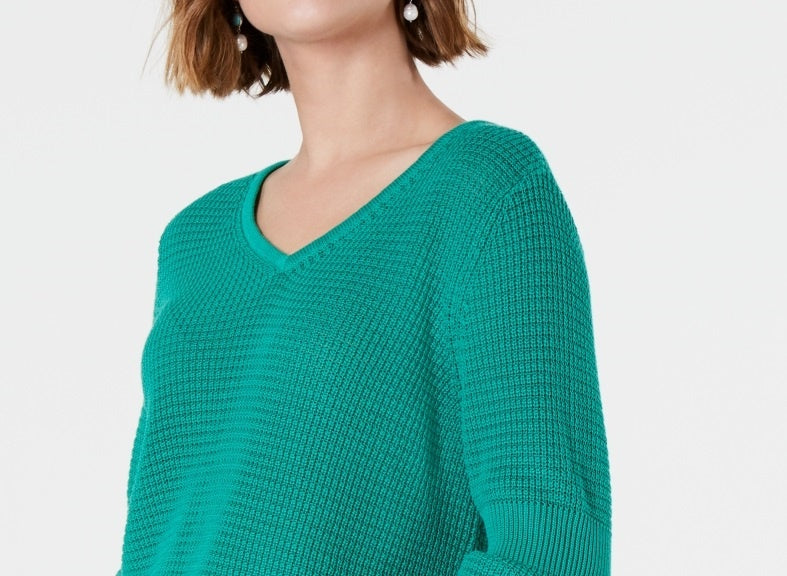 Suéter feminino de algodão com ponto waffle Style & Co, verde, tamanho X-S