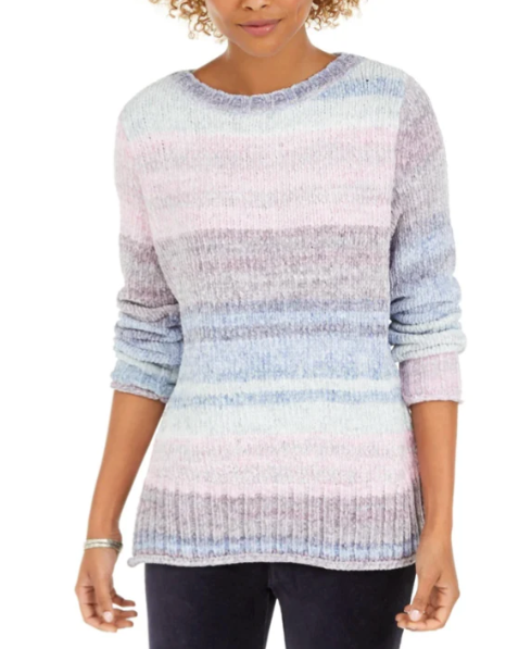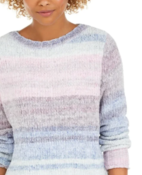 Suéter feminino de chenille com gola redonda estilo & co, azul, tamanho pequeno, extra grande