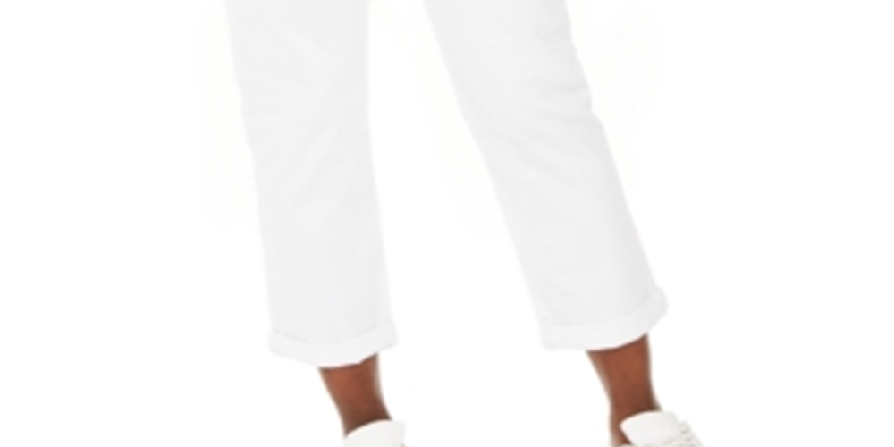 Calça jeans feminina estilo curvilíneo com punho e corte estilo namorada, branca, tamanho 2