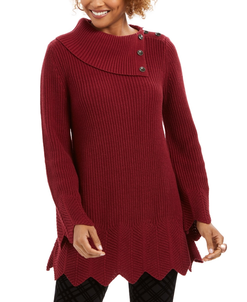 Ask a question about Suéter feminino com decote envelope e acabamento recortado, tamanho pequeno, vermelho, estilo & co