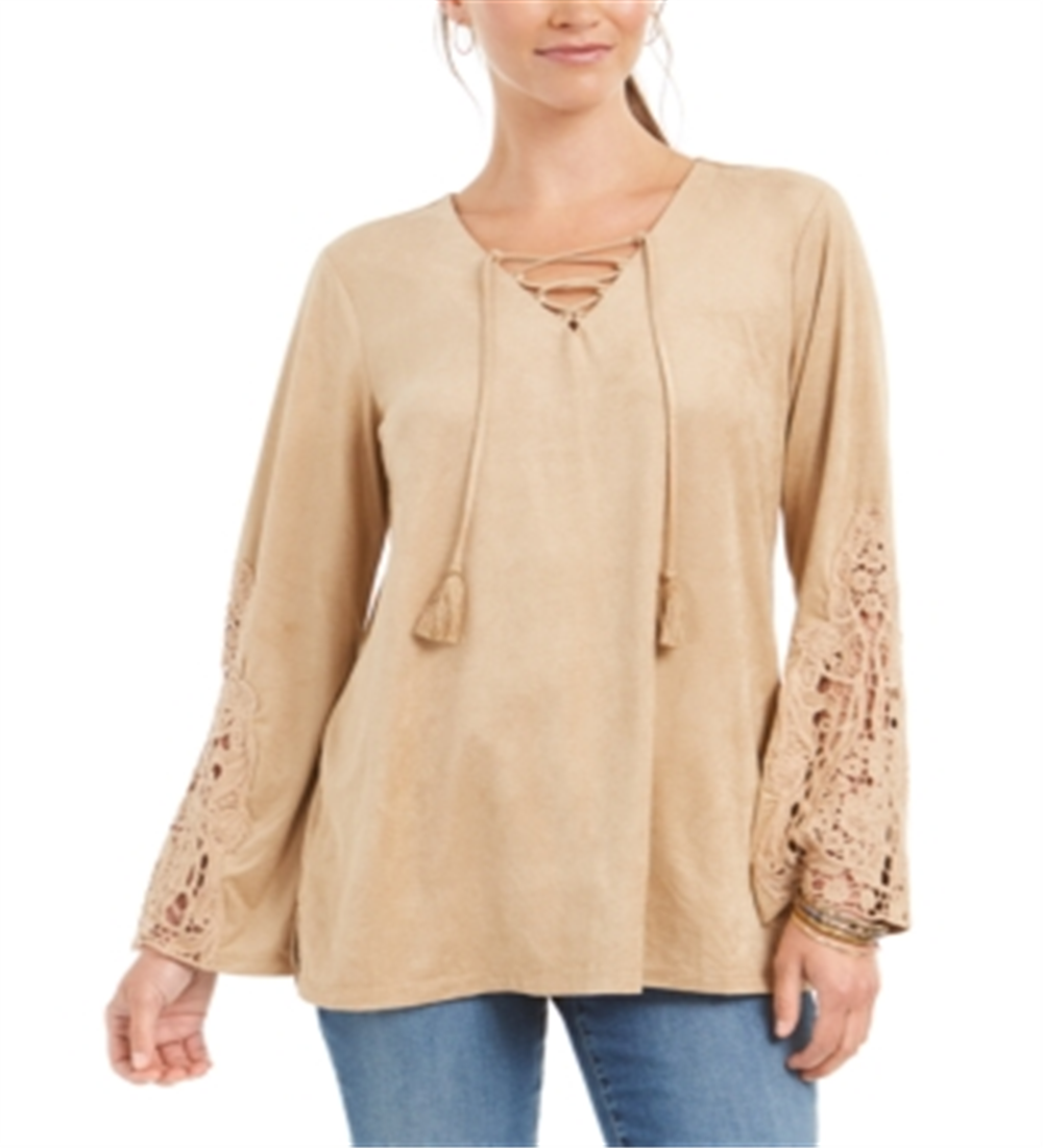 Top de camurça sintética com cadarço feminino Style & Co, marrom, tamanho X-S