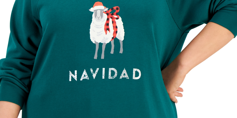 Aproveite as festas de fim de ano com o moletom gráfico de Natal plus size da Style & Co. | Aproximadamente 31 de comprimento | Gola redonda | Esta peça foi feita em uma fábrica que apoia o empoderamento das trabalhadoras por meio do RISE | que cria parcerias para permitir intervenções de saúde no local de trabalho
