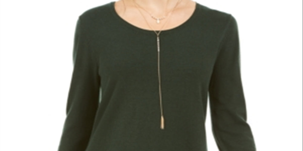 Blusa feminina de manga comprida com acabamento em renda, estilo & co, verde, tamanho pequeno