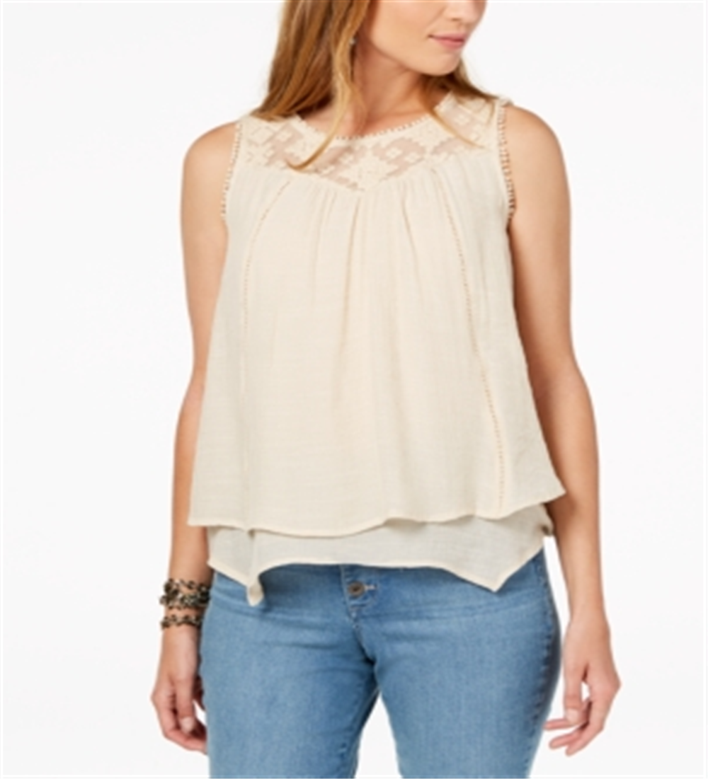 Blusa feminina com bainha em camadas e acabamento em renda, creme brule, estilo Style & Co - tamanho PP