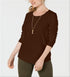 Blusa feminina de manga comprida e gola redonda estilo & co, marrom, tamanho grande
