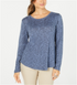 Blusa feminina de manga comprida e decote redondo Style & Co, azul jacinto, tamanho XS