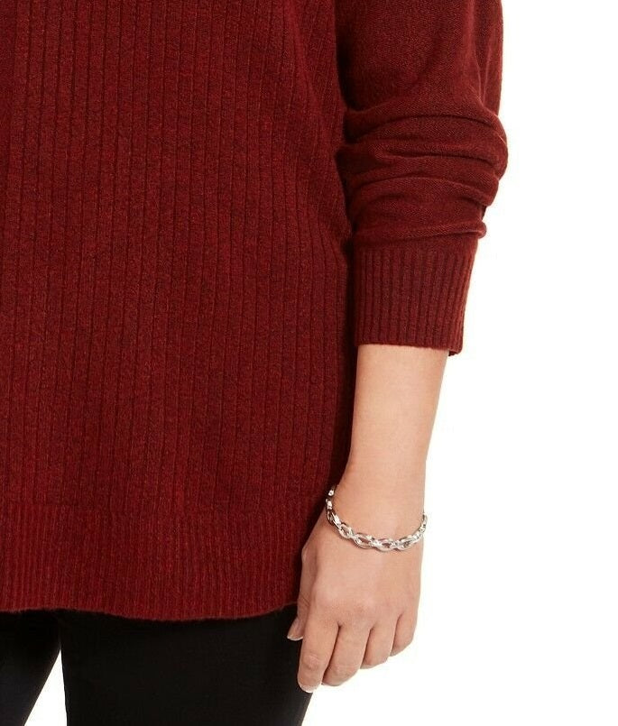 Devido ao tamanho generoso, sugerimos um tamanho menor para um ajuste perfeito | Gola alta canelada | Painéis canelados e lisos na frente; bainha alta-baixa com faixa canelada | Mangas compridas com ombros caídos e punhos canelados | Acrílico/nylon/elastano