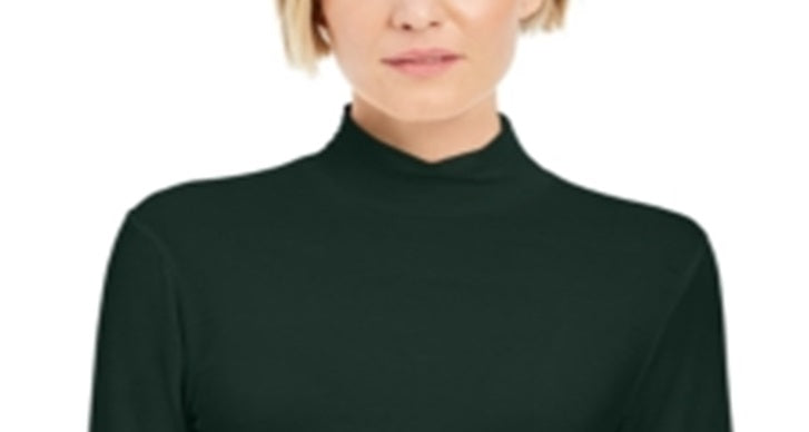 Estilo e Co Tamanho PP Petite Hunters Green Camisa de gola alta com manga comprida Gola alta (simulada) Peito 17 de largura Comprimento 22,5 Manga 22 Mistura de rayon e elastano Muito bom!