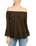 Blusa feminina estilo & co, ombro de fora, manga sino, marrom, tamanho X-S