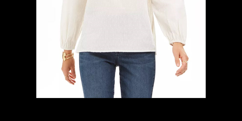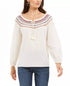 Blusa feminina pequena de algodão com gola franzida bordada estilo & co, tamanho PP, branca