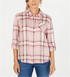 Camisa xadrez feminina Style & Co com um bolso, rosa, tamanho M