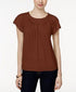 Blusa feminina estilo & co, gola plissada, mangas bufantes, marrom, tamanho médio