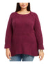 Suéter feminino plus size com punhos nas laterais e mangas compridas, gola redonda, roxo, tamanho 0X