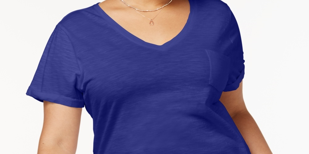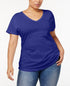 Camiseta feminina plus size com decote em V, estilo & co, azul, tamanho 0X