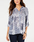 Blusa feminina estampada estilo & co, de botões altos e baixos, azul, tamanho X-S
